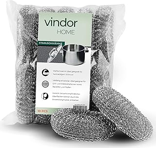 VINDOR Stahlschwämme – Topfreiniger aus galvanisiertem Stahl, löst hartnäckige Verschmutzungen, 10 Spülschwämme