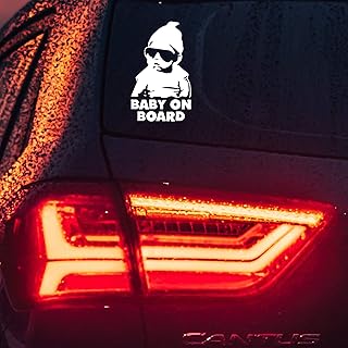 Vinyl Auto Aufkleber Baby on Board - Kind mit Sonnenbrille Hangover Film Stil für Fenster Entfernbarer Sticker DIY (15x11 cm)
