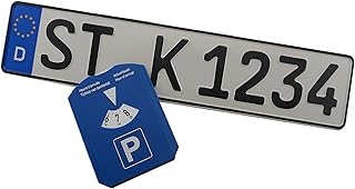 1 DIN-zertifiziertes Kfz-Kennzeichen in der Standard-Größe 520x110 mm inklusive Parkscheibe passend für alle Deutschen Fahrzeuge