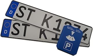 2 DIN-zertifiziertes Kfz-Kennzeichen in der Standard-Größe 520x110 mm inklusive Parkscheibe passend für alle Deutschen Fahrzeuge