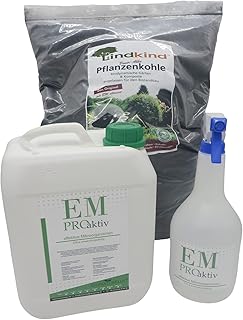 SET 5 Liter Effektive Mikroorganismen mit stabiler 1 Liter Sprühflasche sowie 20 Liter Pflanzenkohle von Lindkind 5 Ltr. EM Pro aktiv Bodenaktivator EM-Aktiv