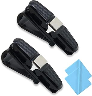 N//A Auto-Brillenhalter für Sonnenblende, 2 Stück, doppelte Sonnenbrillen-Ticket-Karten-Clip, drehbare Brillen-Halterung, mit Brillentuch, zur Aufbewahrung von Autozubehör (Silber)