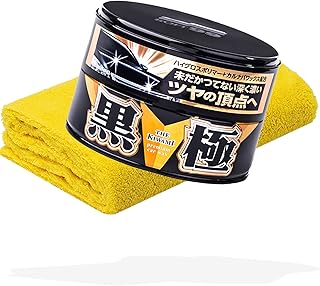 detailmate Wachs Set: Soft99 Extreme Gloss Wax The Kiwami Dark, Carnauba Autowachs Lackversiegelung mit Schwamm, 200g, Edgeless Superflausch Mikrofaser 550 GSM gelb