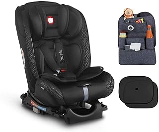 Lionelo Bastiaan Kindersitz, Autokindersitz ab Geburt, Rücksitz-Organizer und zwei Sonnenblenden, Gruppe 0+ 1 2 3 (0-36 kg), ISOFIX 360°, TÜV SÜD, ECE R 44/04 (Grau-Schwarz+Set)